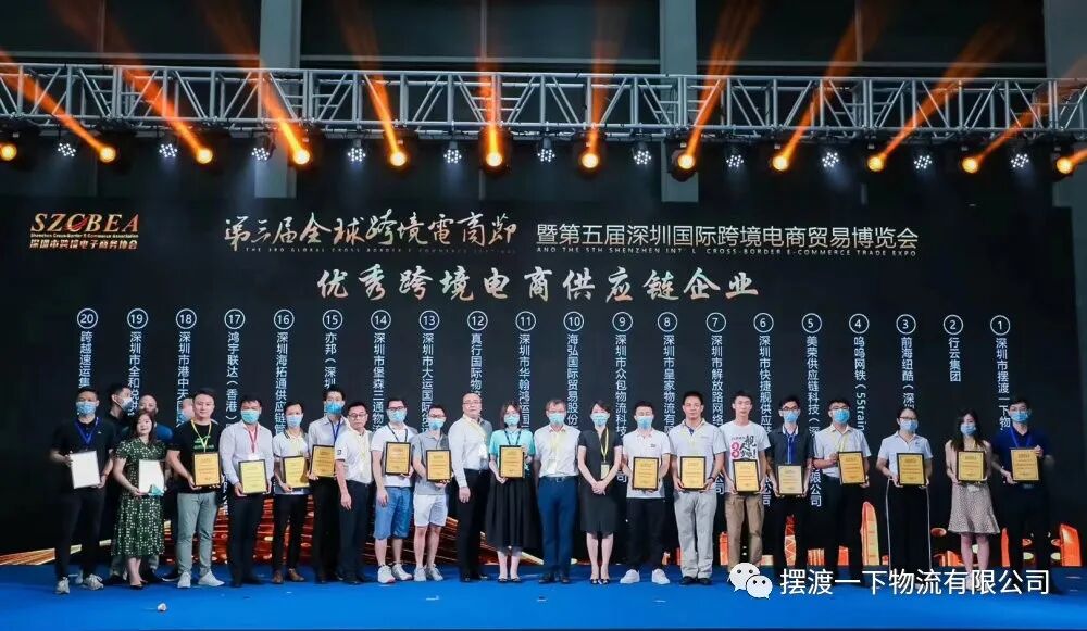 深圳市摆渡一下物流有限公司荣获优秀跨境电商供应链企业称号--图右一